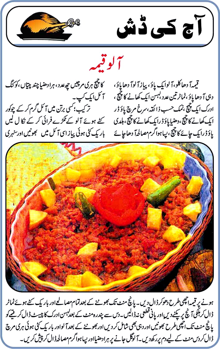 Cooking Recipes Aloo Keema in urdu Ingredients and Cooking Directions provides here.Click on image for detail view.
