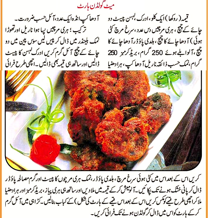 Cooking Recipes Meat Golden Heart in urdu Ingredients and Cooking Directions provides here.Click on image for detail view.
