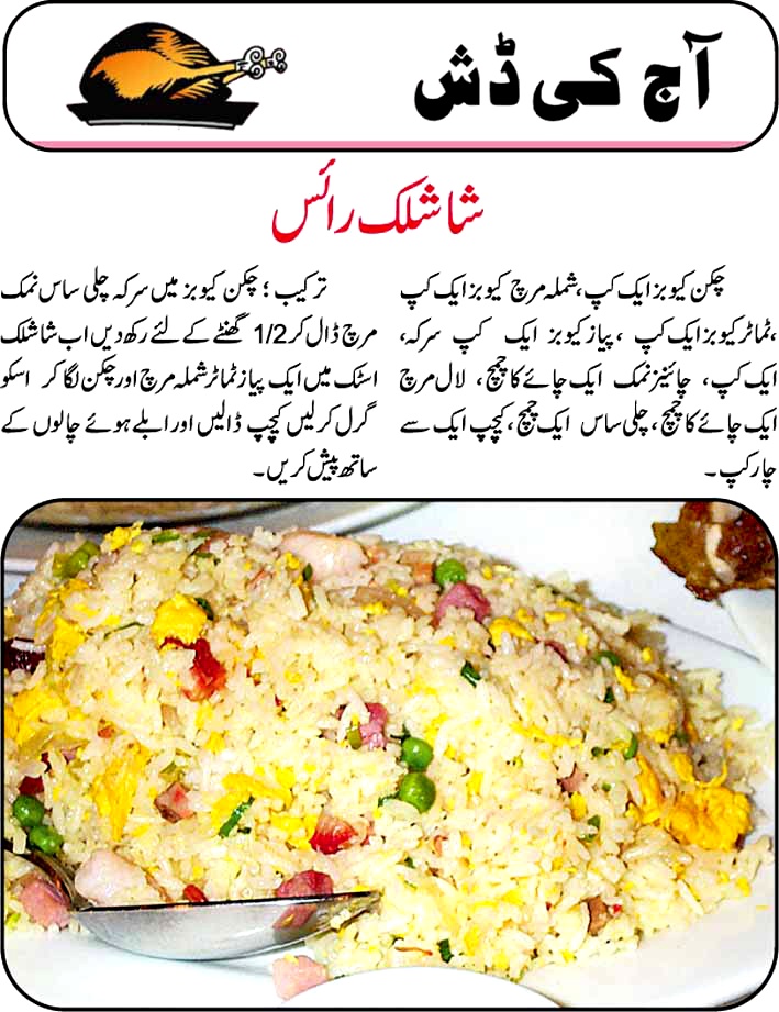 Cooking Recipes Shashlik Rice in urdu Ingredients and Cooking Directions provides here.Click on image for detail view.