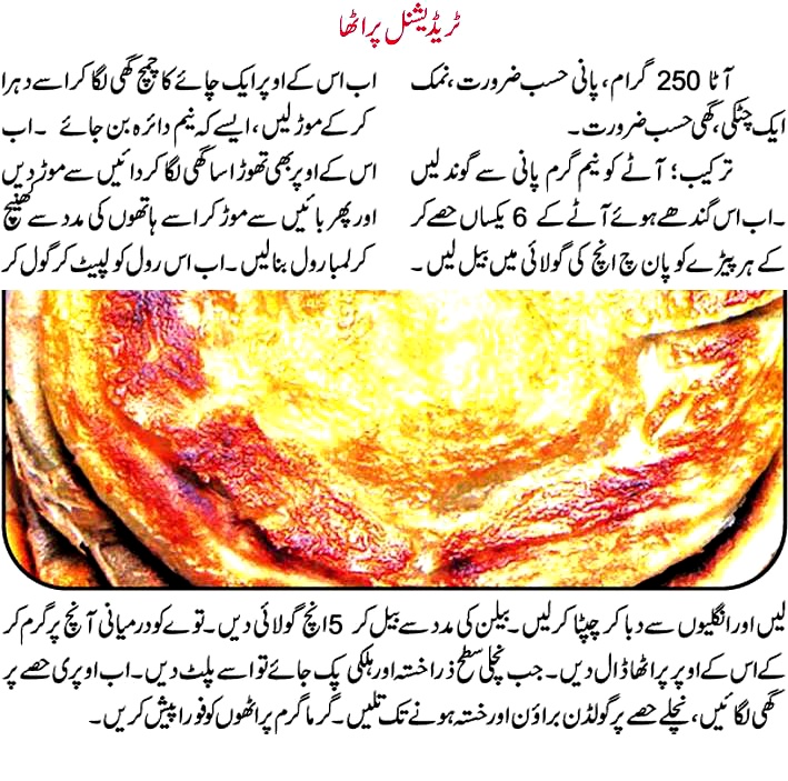 Cooking Recipes Traditional Parotha in urdu Ingredients and Cooking Directions provides here.Click on image for detail view.