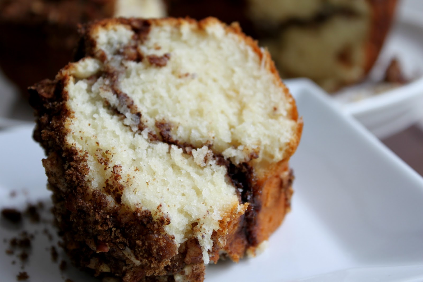 VERDICT: The cake had a very tender texture, indeed. It was moist, and the sour cream gave just the right amount of tang. Reducing the amount of butter, from two sticks, to one worked out fine, in my opinion. We loved the cinnamon-pecan filling, and I don't regret cutting back on the amount of pecans. I love pecans, but I wanted the cinnamon to be equal. I think using brown sugar was another bonus. Everyone went back for seconds. This is a great recipe, and I'll definitely make it again.